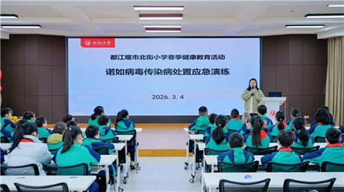 安全防护课:以“筑牢安全防线,守护健康成长”为目标,3月3日开展防止学生欺凌法制教育活动,四川重德律师事务所严雪律师结合校园真实场景设计案例,实用性强,为学生新学期校园生活扫清安全障碍。3月4日开展春季健康教育活动:诺如病毒防控宣讲及应急演练,由健康副校长——都江堰市妇幼保健院儿科医师、医务部副部长贾文主讲。