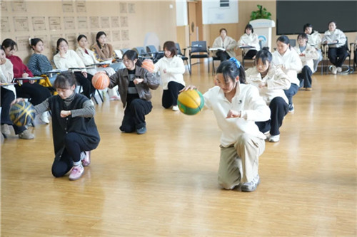 早操是幼儿一日生活中的活力序曲,更是身体发展与情感表达的重要载体。3月1日,全体教师在业务部门组织下开展2026年春季学期早操审议。大班组以“篮球少年”为主题,将篮球器械与经典音乐融合,在力量展示与团队协作中实现“以球健体”;中班组化身“宇宙探险家”,通过球、圈、绳的多样玩法,探索身体与空间的互动;小班组以“小动物去郊游”为情境,在模仿与趣味游戏中唤醒身体潜能;托班组则用“海洋动物操”配上童趣口诀,让萌娃在欢快律动中感受运动乐趣。