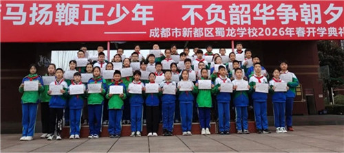 伴着淡淡樱香,开学典礼圆满落幕。声声马蹄催奋进,新学期的号角已然吹响,蜀龙学校学子将不负春日韶光,以拼搏为缰,把梦想的种子播撒在校园沃土,在笃学不倦中积淀成长,在追梦路上坚定前行,携手共赴新学期的美好征程。(翁玉华)
