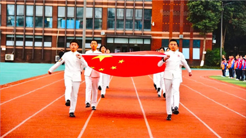 开学典礼在庄严的升国旗仪式中拉开帷幕。五星红旗迎着春风冉冉升起,全体师生肃立敬礼,嘹亮的国歌响彻校园,少年意气在春日暖阳中尽情绽放。