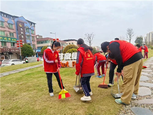 活动过程中,志愿者们不顾尘土与劳累,以饱满的热情投入到志愿工作中。稚嫩的脸庞上洋溢着真诚的笑容,忙碌的身影穿梭在公园的各个角落,成为春日里一道温暖而亮丽的风景线。他们用双手清理环境,用行动传递善意,展现出九江初中学生积极向上、乐于奉献的良好精神风貌,赢得了社区工作人员和来往居民的一致好评与点赞。