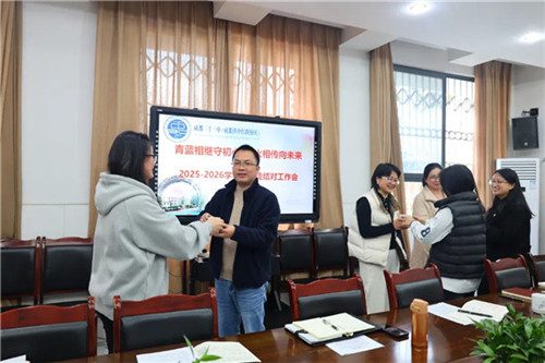 青蓝相继,又是一载薪火传。为助力青年教师快速成长,充分发挥骨干教师的示范引领作用,2026年3月3日下午,成都铁中红旗校区召开了2025-2026年度下期师徒结对工作会,学校领导及结对师徒共同参与,一场关于成长与传承的温暖对话就此展开。