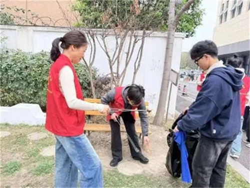 宣讲结束后,教师们在清泰广场及周边社区开展沉浸式志愿实践服务,让雷锋精神在俯身实干中落地生根。大家分工协作,有的细心擦拭公共标识牌,让社区环境更添清新;有的手持垃圾夹、垃圾袋、小抹布等工具,认真清理街道和广场上的垃圾、杂物,将乱停乱放的共享单车一一摆放整齐;遇到随地乱扔、践踏绿植等不文明行为,老师们也会以温和的方式进行劝导,用行动带动身边人自觉维护社区环境。忙碌的身影成为春日社区里一道亮丽的风景线。