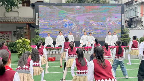 春风拂过操场,操场上秩序井然。锦里小学全体师生整齐列队,精神饱满。伴随着舒缓悠扬的传统音乐,四川省针灸学校的学子们登上舞台,化身领练导师,一招一式示范八段锦。舒展柔和、行云流水的动作,在春风中尽显传统功法之美。锦小学子认真跟随、凝神习练,抬手、转身、弯腰、踢腿,动作规范标准、整齐划一,在动静之间舒展筋骨、调节气息,感受中华传统养生文化的独特魅力。