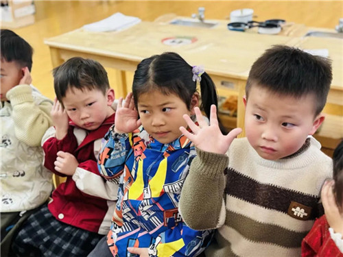 幼儿园还开展“听声音找物品”“传递小秘密”“感受音乐” 等趣味游戏,让幼儿在体验中感受听力的美好。