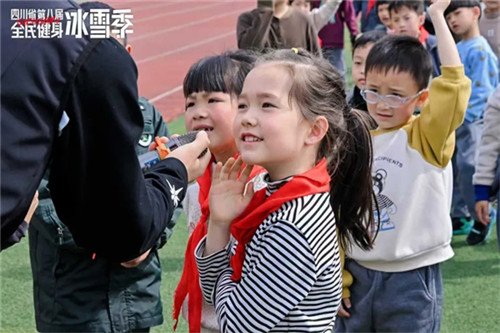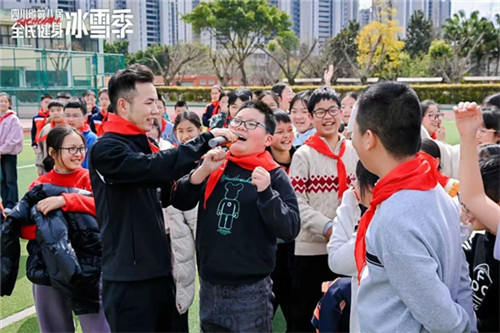 活动现场,全校师生以热烈掌声迎接四川省冰雪运动协会、成都雪乐山滑雪俱乐部的专业教练团队。少先队员代表登台为嘉宾佩戴红领巾,以最真挚的方式表达敬意,庄重又温暖的瞬间,为本次冰雪活动拉开美好序幕。