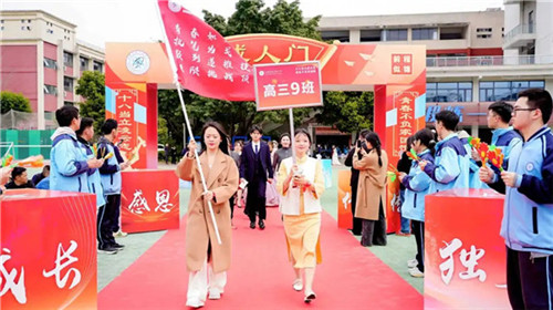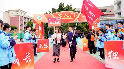 下午14:00,礼炮齐鸣,学校党委副书记、校长刘楠宣布“开启成人门”。高三学子与父母手挽手,踏上红毯,昂首跨过象征成长与责任的“成人门”。