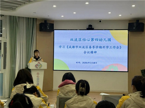 园长带领全体教职工深入学习《成都市教育系统2026年春季开学专项培训会》《成都市双流区春季学期开学工作会》会议精神,精准传达上级要求,为新学期园所工作锚定方向、明晰重点。