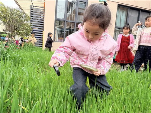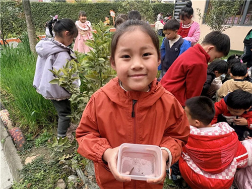 春雷唤醒了泥土里的小生命,孩子们的好奇心也被彻底点燃。他们拿起小铲子、放大镜,来到幼儿园的种植区,蹲下身来仔细寻找“被闹醒”的小虫子。