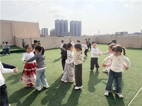 结合惊蛰“炒虫”的习俗,孩子们玩起了传统游戏“炒黄豆”。在欢声笑语中,锻炼了身体的协调性和灵活性,也寓意着将害虫“炒”走。