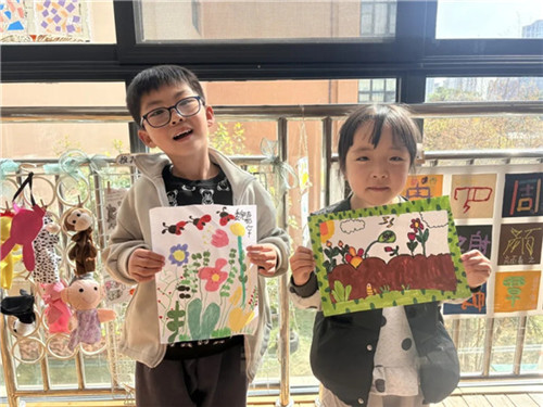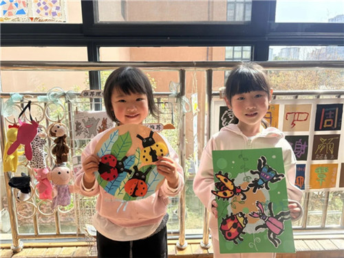 孩子们用画笔描绘心中的惊蛰,有刚刚苏醒的毛毛虫,有趴着叶子的七星瓢虫,还有飞舞的蝴蝶……