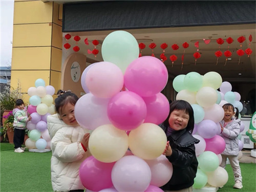 气球点缀童年梦,老师们面带微笑在门口迎接每一位宝贝的到来。