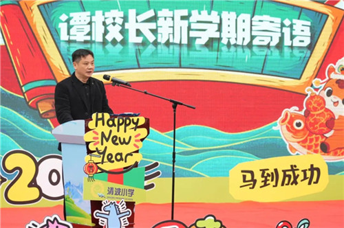 校长谭小明带着对大家的满满期许走上台,为大家送来了新学期的专属祝福。谭小明贴心叮嘱同学们:机器有算法,但人生有选择;机器有程序,但生命有热爱。希望清波小学的孩子们都成长为有力量、有温度、有思想、有梦想的中国人!