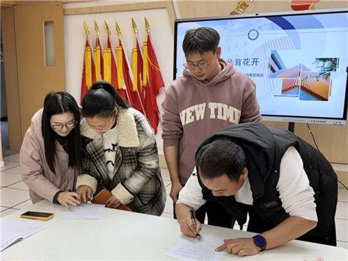 活动在温馨而庄重的师徒结对仪式中拉开帷幕。伏琦老师与付超老师、刘倩老师与汪丽老师作为师徒代表,签订结对协议,互赠礼物,许下成长之约。