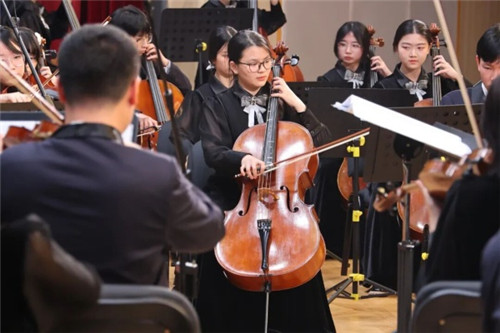 本场音乐会的匠心之作,当属为活动专属改编的大提琴协奏曲《鸿雁》。钟礼今、何奕池同学联袂演绎,乐曲融合蒙古族长调、《嘎达梅林》经典旋律,低沉的大提琴与悠扬的竹笛交织,将草原的辽阔与民族的豪迈展现得淋漓尽致,为现场观众带来量身打造的听觉盛宴。
