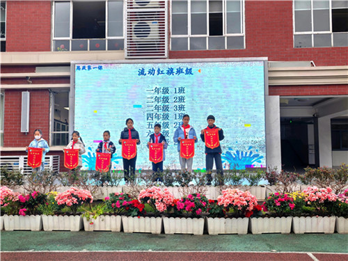 随后,学校为上周队列队形展演获得优秀组织奖的班级和流动红旗班级进行了表彰。