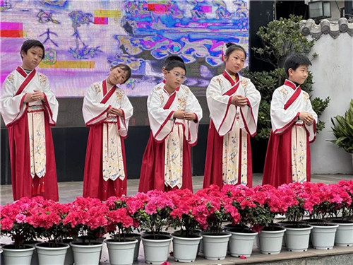 音乐缓缓响起,一群身着汉服的孩子走上舞台。女孩们发间簪花,衣袂飘飘;男孩们束带齐整,步履端方。宽袖轻拂间,千年前的礼仪之风穿越时空,来到这个三月的清晨。队形变换,动作舒展。那份认真与虔诚,写在每一张小脸上。他们用舞蹈告诉所有人:礼仪之邦,从来不只是历史的记忆,而是流淌在我们血脉里的基因。