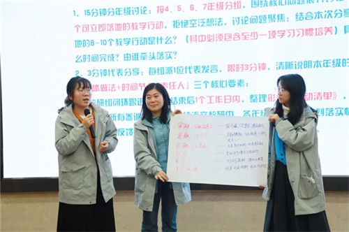 本次培训的最终目的不是“听热闹”,而是“真落地”。分享结束后,老师们迅速进入行动与落地环节:按年级分组,围绕核心问题展开头脑风暴,随即讨论出8—10项可立即落地的具体教学行动,并明确了“具体做法、时间节点、责任人”。这些凝结着集体智慧的行动清单,将在后续教研中持续跟进、反馈,确保每一项思考都能在实践中生根发芽,真正转化为教学现场的改变。