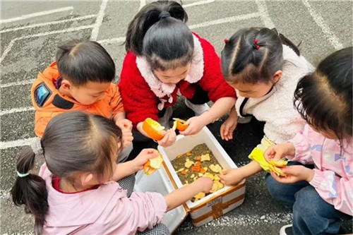为了让幼儿更直观地了解生态循环的意义,树立绿色环保理念,幼儿园开展了堆肥实践活动,让幼儿在动手操作中践行环保。