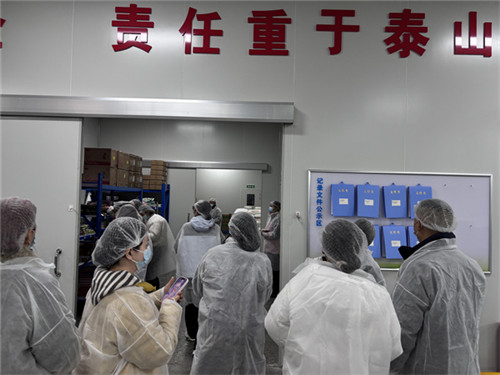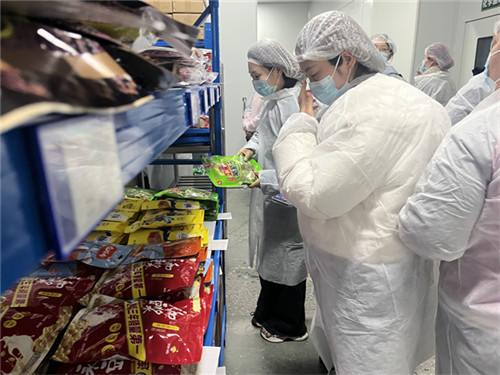 随后,代表们有序走进仓储库区、分拣操作区、配送调度区等核心区域实地参观。大家近距离查看了食材的储存环境、包装标识与溯源信息,亲眼见证了食材分拣、打包、核对的规范操作流程,以及配送环节的严谨调度。整洁规范的仓储环境、清晰完整的溯源体系、细致入微的操作规范,让代表们直观感受到了食材供应端对食品安全的严格把控。