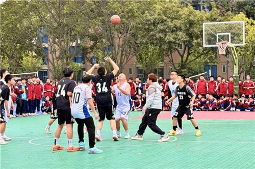 开幕式结束后,首先亮相的是教师联队VS校高中足球队友谊赛、教师联队VS校初中篮球队友谊赛。
