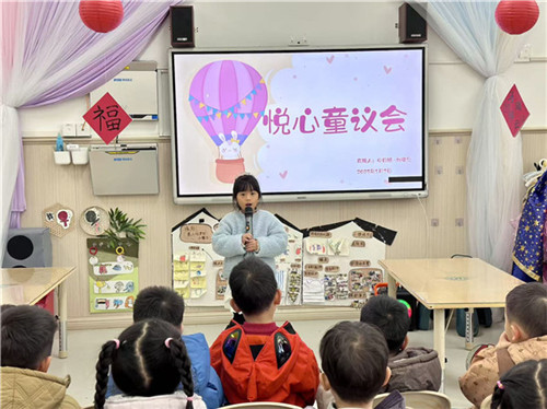 当然,“大健康”不仅仅是身体上的健康,还有心理方面的滋养。幼儿园的楼道拐处有秘密空间,每个班级还设有“情绪角”,当孩子不开心时,可以到那里抱抱玩偶、画一幅画。老师会通过绘本《我的情绪小怪兽》,教孩子们认识并管理情绪。“老师教我不开心可以深呼吸,还可以告诉好朋友和爸爸妈妈。”大四班的雨桥说道。