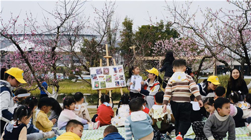 东安湖幼儿园毗邻东安湖体育公园,拥有得天独厚的地理环境,依托这一资源,幼儿园在开园之初便开发了“五日行”实践活动,而后又在此基础上升级出“行走东安湖”活动。这堂“移动课堂”重在让孩子们在行走过程中领悟自然之道、运动之道、智慧之道、人文之道。