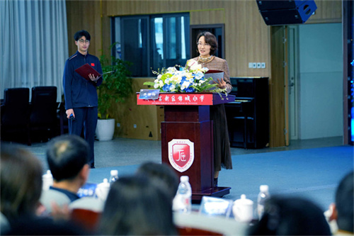 风采展示的热烈氛围仍未褪去,锦城小学党支部书记、校长李雪梅登台致辞。她围绕学校“健康第一”的教育理念,系统介绍了实践路径:坚持落实每日两小时体育锻炼,常态化开展班级联赛与校园系列赛事,着力构建全域可运动、全员可参与的校园体育生态,切实推动学生体质健康水平稳步提升、近视率持续下降。“让孩子们看得远、长得高、跑得快,这正是我们对‘健康第一’最生动的诠释。”面向未来,她提出锦城小学将以数智赋能体育教育,依托人工智能实现体育精准教学,助力每一位孩子真正做到“身上有汗、眼里有光、心中有梦、脚下有力”。