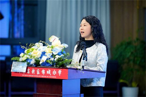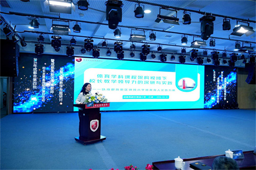 随后,副校长江凌系统介绍了学校体育“乐群学堂”课程体系。她从时代回响、课程建构、课程变革、改革成效、辐射引领五个维度展开,全面呈现了学校体育课程的整体架构与系统布局,让与会者深刻感受到锦城小学“健康第一”理念的系统落地与扎实成效。