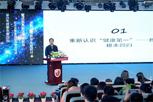 成都市教科院体育教研员罗亚和带来《坚守“健康第一” 建设高品质“健康学校”》专题讲座。他围绕高品质健康学校建设、体育学科课程架构、教师专业发展等关键议题,为与会者提供了理论引领与实践指导。