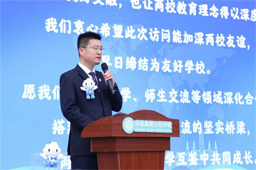 双方学校领导依次致辞,共叙中德教育互鉴初心,畅谈青少年成长愿景,字里行间满是对跨国交流的期许与祝福。互赠礼物环节,云芯以精巧蜀绣承载巴蜀非遗底蕴,定制信物镌刻诚挚心意,德方亦以特色礼品传递友好,一物一礼皆为情谊见证,一针一线尽是文明共鸣。