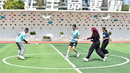 体育是跨越语言的共同语言。欢迎仪式后,中德学子齐聚操场,共同体验棍网球特色课程。阳光下,少年们奔跑、传球、协作、竞技,陌生与隔阂在欢声笑语中消散,取而代之的是并肩同行的默契与纯粹的友谊。汗水与笑容交织,成为校园里最鲜活的青春风景。