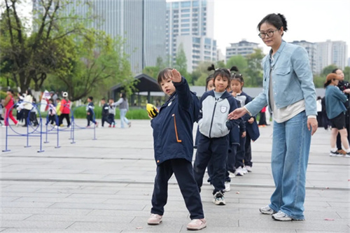 到达公园后,传统射箭、鱼雷投准、呼啦转圈、球棒赶猪、立杆套环……丰富多彩的体育活动在阳光下展开。孩子们奔跑、跳跃、协作、欢笑,红扑扑的小脸上写满了活力与快乐。