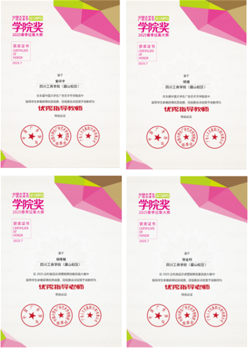 由中国广告协会主办的“中国大学生广告艺术节学院奖2025春季征集大赛”已于近日圆满结束。四川工商学院广告学专业学生凭借扎实的专业素养与创新性创意表现,从全国千余所高校的20万余件参赛作品中脱颖而出,共获41个奖项,其中入围奖32项、优秀奖9项。