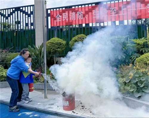 保安为大家介绍灭火工具及灭火器的正确使用方法,并请教师和幼儿实操,真正达到学以致用。演练结束后,安全办教师对整个演练过程进行总结。
