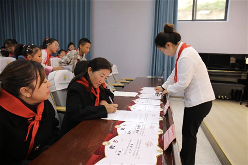 经过认真讨论,新一届大队部委员名单最终确定。在庄严的仪式中,学校领导为新任大队委员颁发聘书,并为他们佩戴上崭新的队干部标志。这一刻,新任大队委员们脸上洋溢着自豪与责任的笑容。