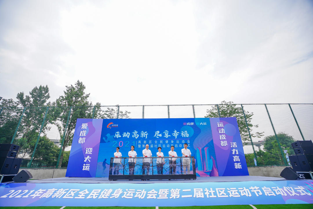 5月28日,“爱成都·迎大运”2021年成都高新区全民健身运动会暨第二届社区运动节启动仪式在高新区网球中心举行。来自成都高新区的社区居民、模范社区代表等近500人参加本次活动,以阳光运动向“建党100周年”献礼。