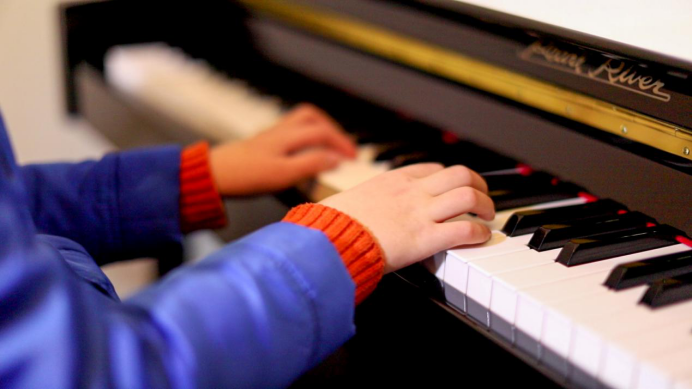 “他刚接触音乐没多久,五线谱都不大熟悉,但是很喜欢自己哼唱歌曲,只要他自己喜欢,我们都会支持。”据秉宸妈妈介绍,小秉宸的姥姥是一位退休教师,从小他就对姥姥家放置的钢琴感兴趣。空余时间,姥姥会带着他识谱、练琴。到了学龄,小秉宸和好朋友龙美熹一起参加了钢琴兴趣班。写完了关于大运会的“即兴作品”后,小秉宸叫起小伙伴龙美熹以弹唱的形式一起完成了这首歌的表演。