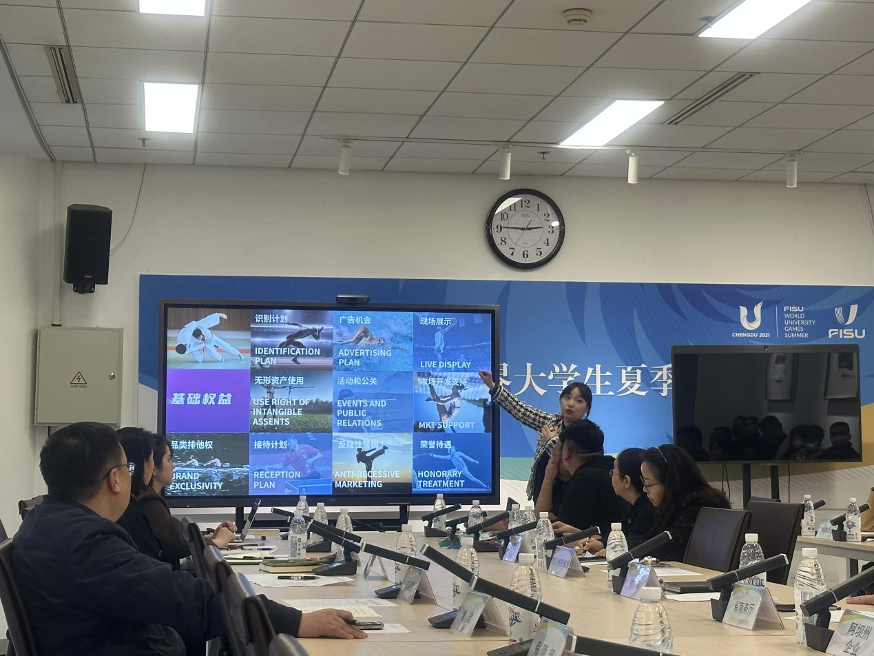 会上,由成都大运会执委会宣传部(开闭幕式部)市场开发处相关负责人对食品饮料等快消企业定向推介大运会赞助合作方式及权益以及大运好礼相关负责人同步详细介绍了大运好礼合作方式,成功吸引本土企业、特色企业,农产品、非遗相关企业合作意向。多元化的合作方式都旨在借助赛事搭建政企合作新平台,吸引更多快消类企业参与到大运会的赞助合作之中,携手共建“绿色大运”新形象,实现企业与赛事的双赢。