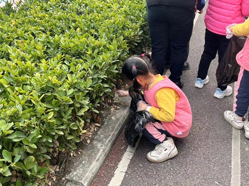 “大家拿好手套、垃圾袋,在爸爸妈妈的带领下,出发吧!”