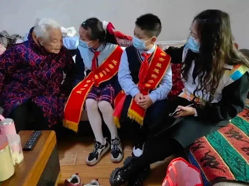 上完辅导课之后,在福字街社区志愿者的带领下,孩子们分成两组来到空巢老人朱爷爷和李奶奶家,开展关爱空巢老人志愿服务活动,为空巢老人送上牛奶,陪老人们聊天,并帮助老人们打扫卫生,以实际行动践行雷锋精神。同时,朱爷爷也给孩子们讲述了雷锋故事,引导孩子们做一个有理想、有抱负的时代好少年。“孩子们的到来温暖了我的心。”空巢老人李奶奶开心的与孩子们聊天,鼓励小小志愿者要好好学习,争做新时代好少年。