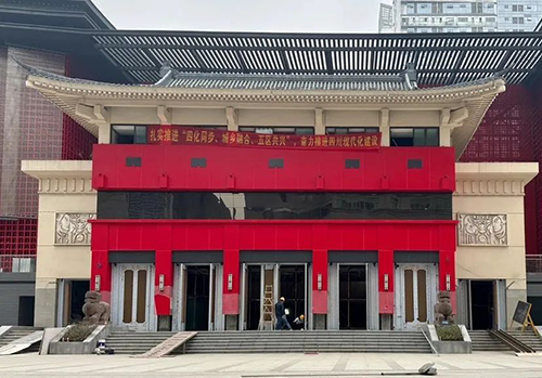 来到位于华兴正街的川剧艺术中心,项目的整体造型已大致呈现在眼前,“中国红”的外立面与灰色的飞檐式起翘建筑屋顶相互呼应,将官式建筑线条的端正雅致与川西民居中青瓦的自在灵动巧妙融合。据悉,该项目建设已进入收尾阶段。