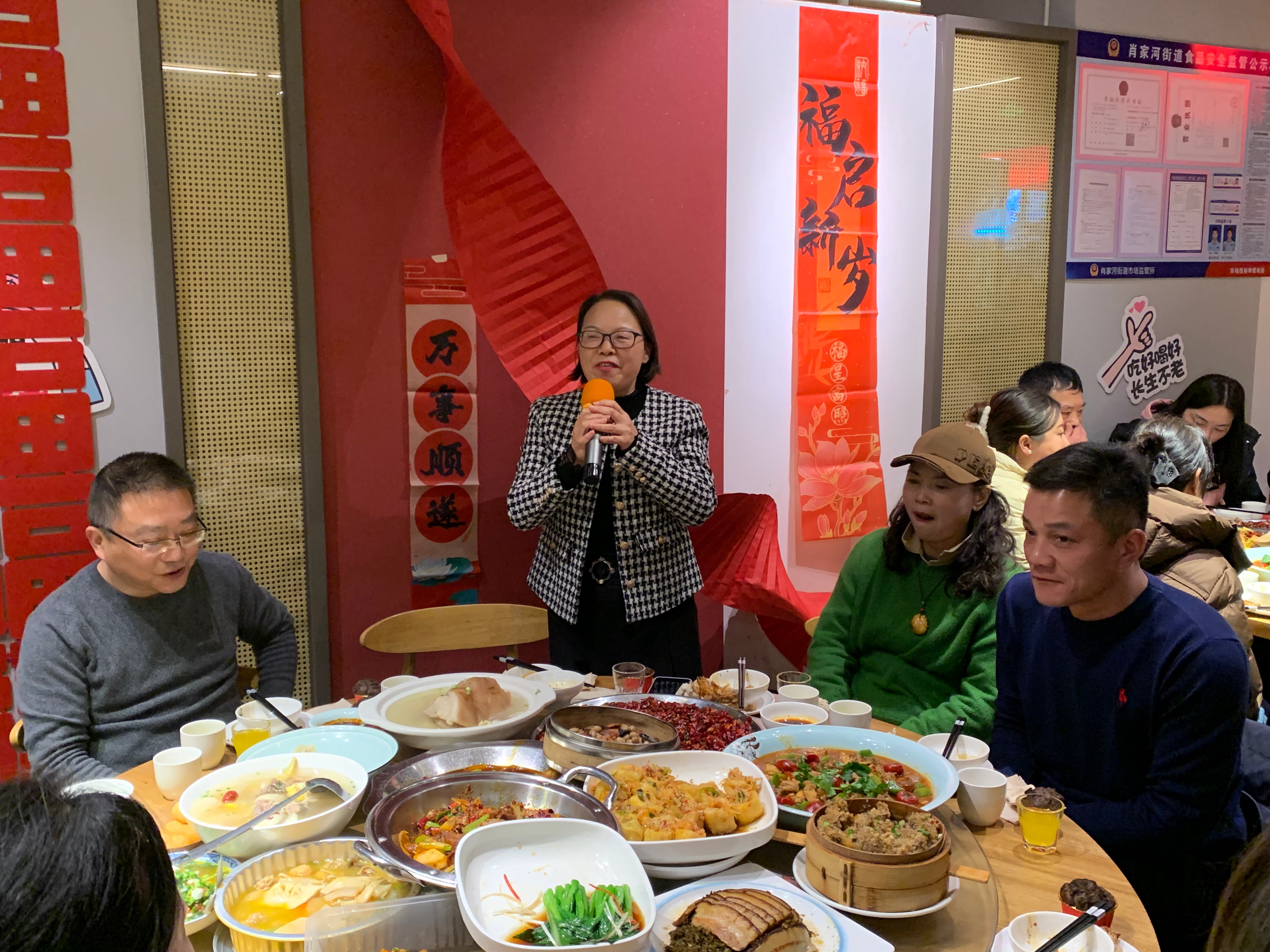 阖家团圆、与家人挚友共享团年饭,此乃春节至关重要的传统习俗,亦承载着众人对相聚团圆的深切期许与美好憧憬。1月17日,高新区肖家河街道兴蓉社区组织开展“温情满溢迎新春”社区团年饭活动,活动整合社区合伙人资源和志愿服务力量,邀请商家代表、独居老人、外卖小哥、残障人士、在岗值守的城市服务保障人员等各界代表,共计105人欢聚在肖家河街道美食联盟提供的场地,愉快地享用由兴蓉社区辖区爱心商家、社区老年人协会、社创中心各工作室、社区热心居民等为他们“众筹”的“爱心团年饭”,共度欢乐、温馨、祥和的时光。