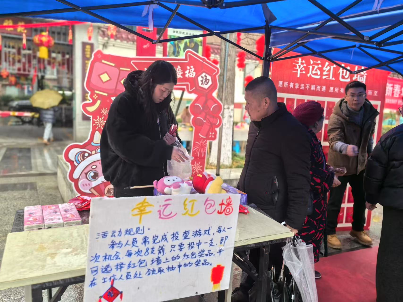 趣味游园区域热闹非凡,书法爱好者们挥毫泼墨,书写春联。一副副寓意吉祥的春联和“福”字,带着对新年的美好期许,被居民们开心领走。欢乐上上签、幸运红包墙等传统与现代相结合的游戏项目,让居民们跃跃欲试,欢笑声、喝彩声此起彼伏。