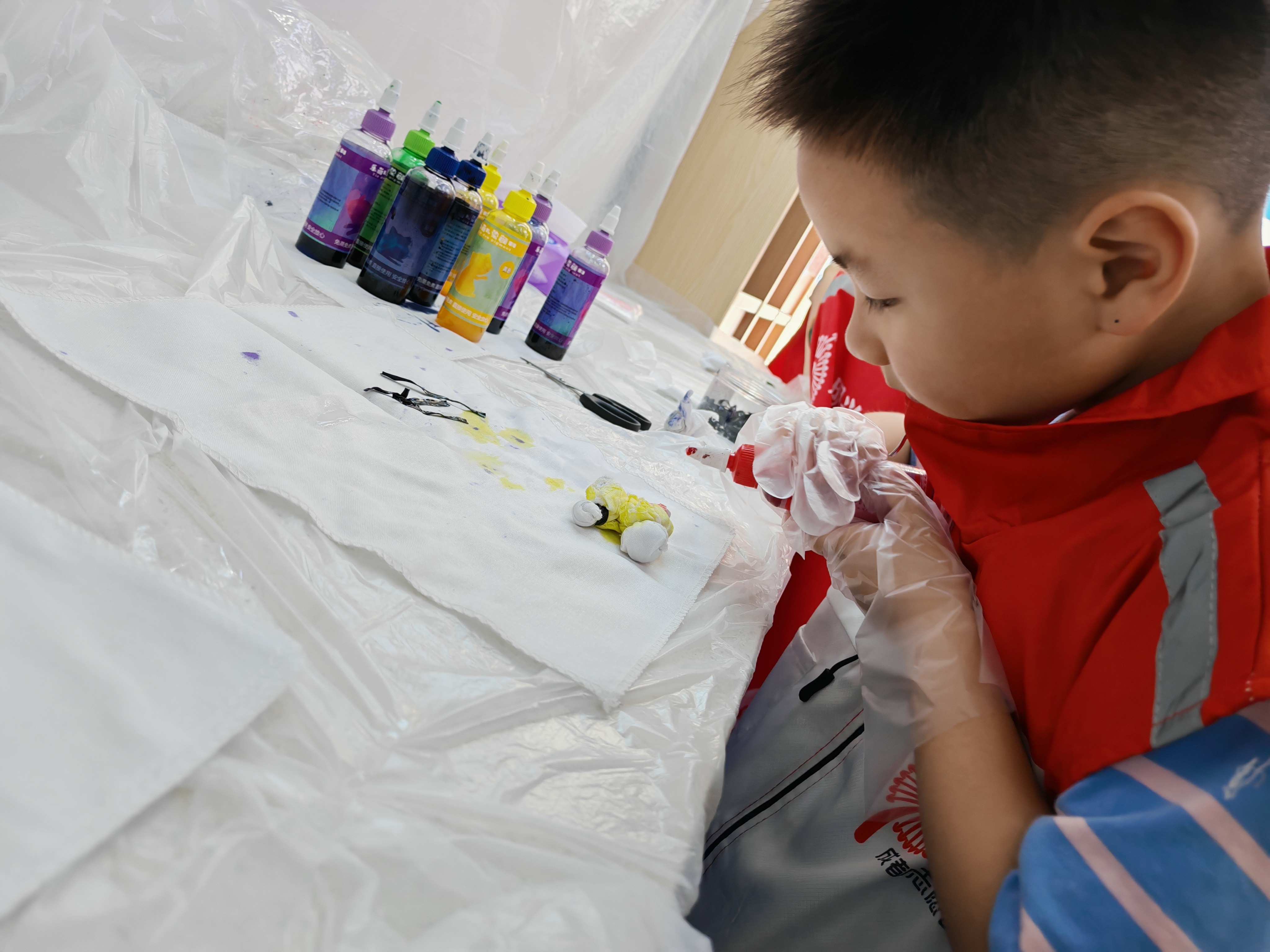 此外,实践所工作人员还组织参与者对现场闲置书籍及前期捐赠书籍进行分类整理,并归档至菜市书屋书架,助力图书资源循环利用,营造“书香共享”氛围。活动最后,志愿者指导青少年制作扎染作品,通过捆扎、浸染等工艺步骤,让参与者感受非遗技艺的魅力,在动手实践中传承文化根脉。