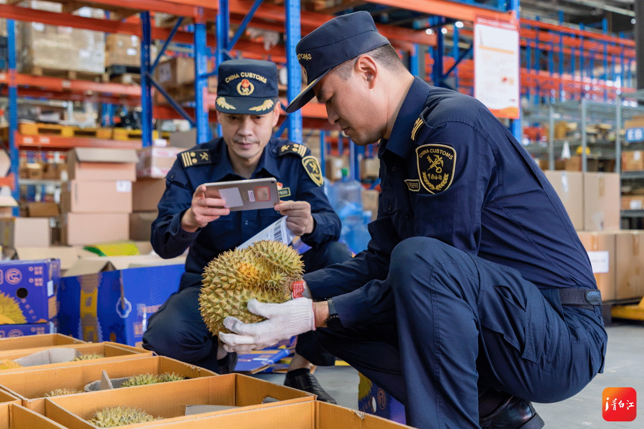 2024年10月22日上午9点,成都国际铁路港综保区保税仓内,工作人员正将泰国金枕榴莲快速打包。当天,西南首单跨境电商“1210保税备货”模式进口榴莲顺利通关,实现了“当日申报、当日出区、当日配送”。